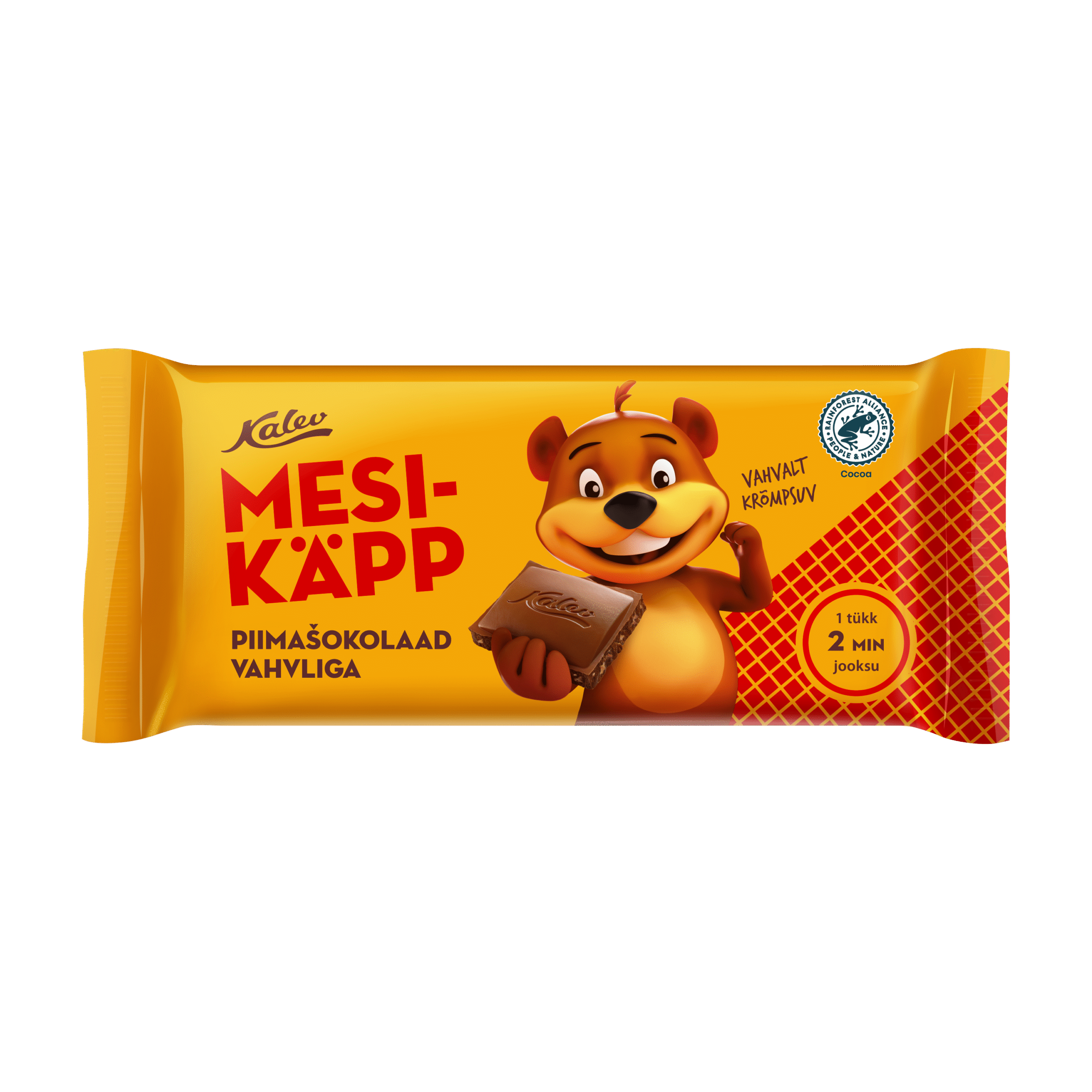 Сладкий молочный шоколад Mesikäpp с хрустящими кусочками вафель – приятное лакомство, когда нужно на ходу быстро получить заряд энергии и ощутить удовольствие от приятного вкуса.